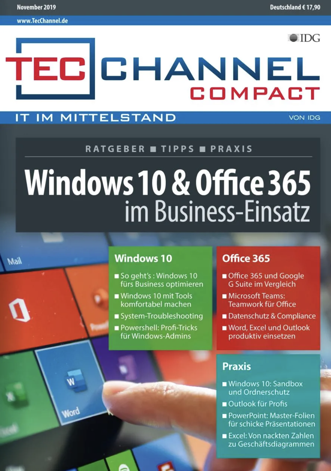Gleich mit 2 Artikeln ist Thomas Maier, Leiter der Office 365 Akademie, in der TecChannel November Ausgabe vertreten.